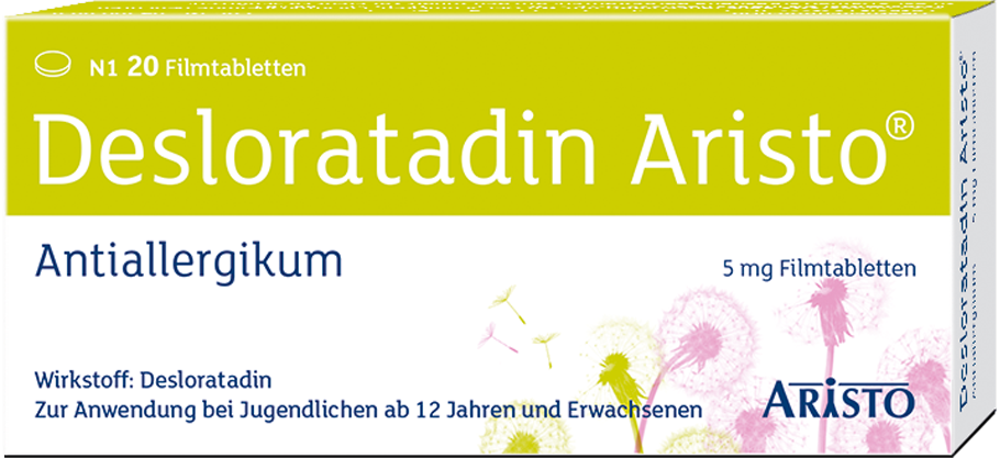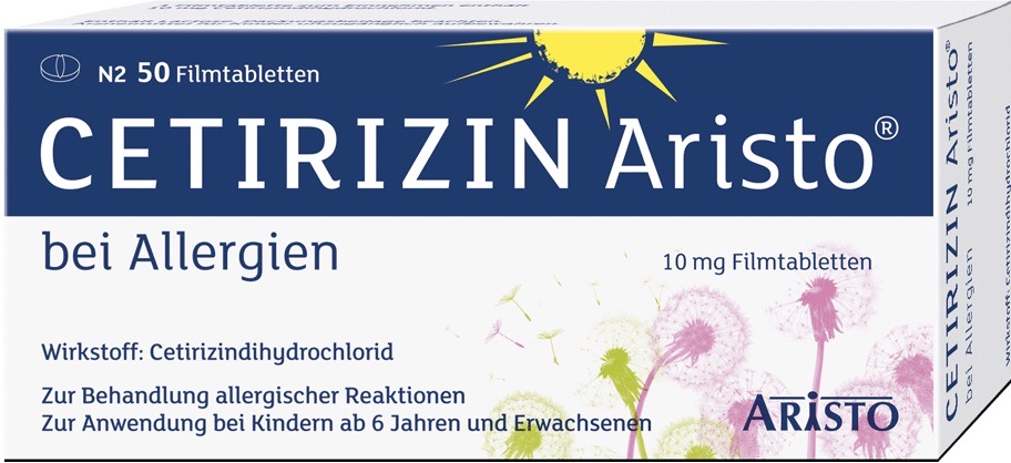Bewährte Hilfe bei allergischen Symptomen bietet der Wirkstoff Cetirizindihydrochlorid, der in Cetirizin Aristo® bei Allergien enthalten ist. In Form von Tabletten und eines Allergiesafts ist Cetirizin Aristo® rezeptfrei in der Apotheke erhältlich. Weiterhin lindert der Wirkstoff Desloratadin, enthalten in Desloratadin Aristo® Filmtabletten, zuverlässig die Symptome einer allergischen Rhinitis und/oder Nesselsucht. Auch Desloratadin Aristo® ist nun rezeptfrei in der Apotheke verfügbar.